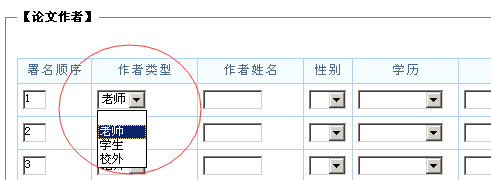 ——请先在“作者类型”处选择“校外”或“学生”,即可直接输入校外人员或学生的信息。