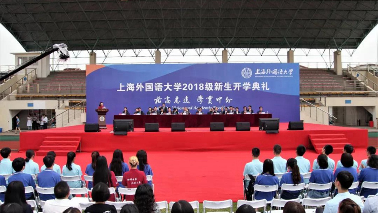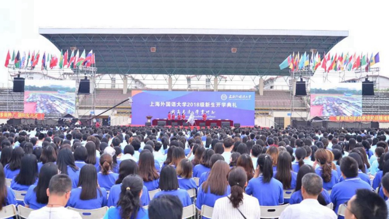 9月11日上午,上海外国语大学2018级新生开学典礼在松江校区体育场隆重举行。校党委书记姜锋,校长、党委副书记李岩松,党委副书记王静,副校长冯庆华、张峰、杨力、周承等上外校领导出席开学典礼。各院系、研究生培养单位和相关职能部处负责人,新生辅导员以及2018级全体新生和部分新生家长共同参加开学典礼。典礼由王静主持。