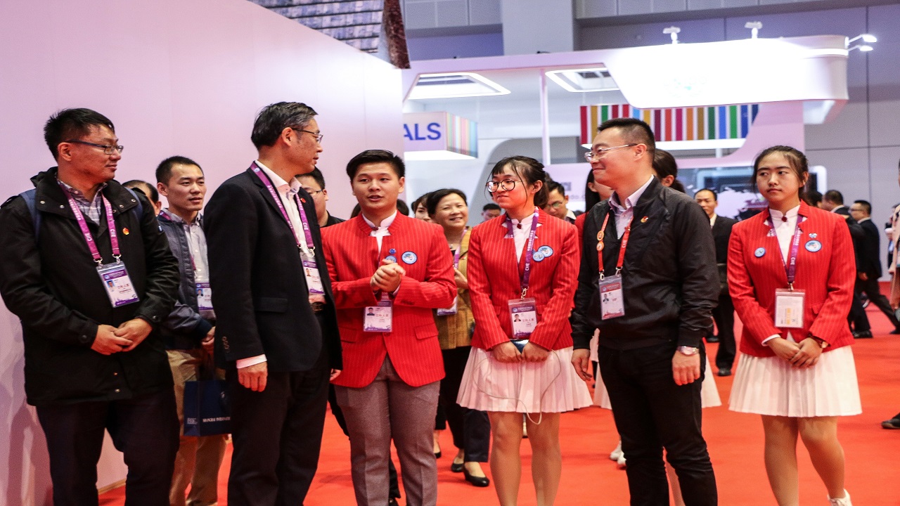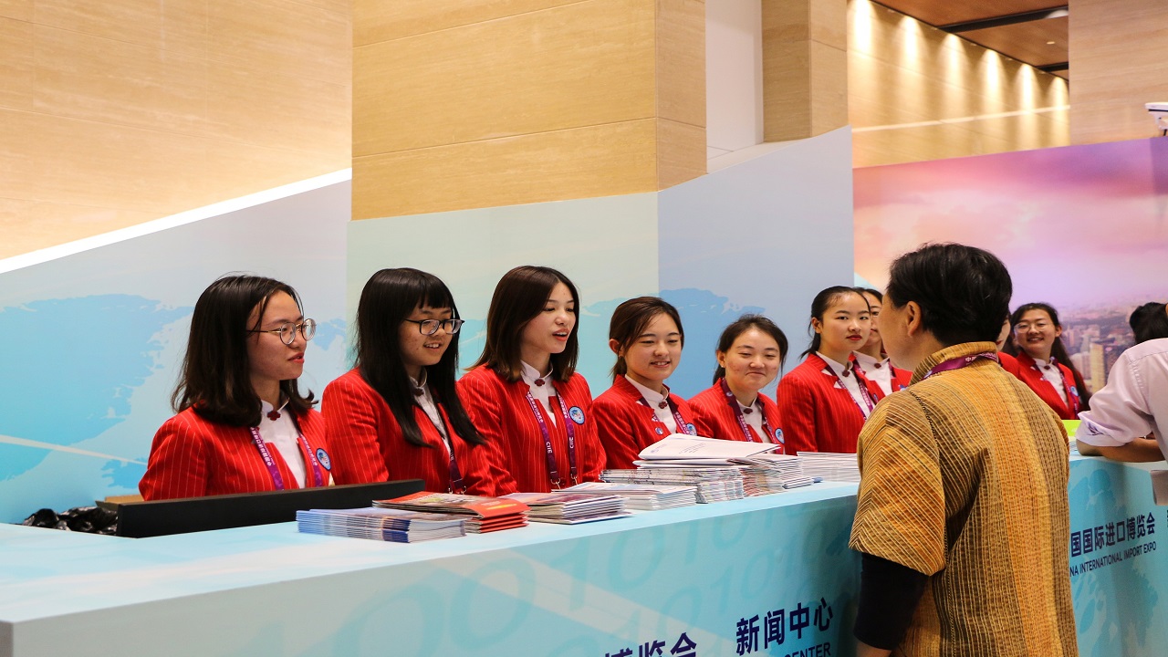 从外部看,国家会展中心宛如四叶草,象征和谐美好的愿景,而内部国家馆中汇聚的来自82个国家、3个国际组织所设立的71个展台,是本届进博会的一大亮点。作为国家馆志愿者组组长,丁舸航介绍:“我们60位上外人在此上岗,为来自世界各国的与会者提供便利服务。”同为志愿者的俄语教师左菲菲也坦言到:“进博会是对专业知识和身心素质的极大考验,十分感谢老师们的慰问。”