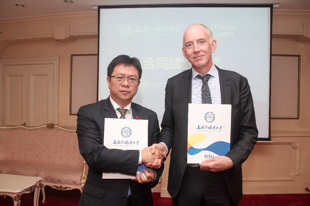 11月12日上午,上海外国语大学与英国大规模在线开放课程(慕课,MOOCs)平台FutureLearn合同续约仪式在上海外国语大学举行,上海外国语大学校长李岩松与FutureLearn行政总裁西蒙·尼尔森(Simon Nelson)代表双方交换合作协议。国际文化交流学院院长张艳莉、国际教育学院常务副院长金慧、田小勇老师、教务处副处长王会花等出席续约仪式。续约仪式由对外合作交流处副处长王征主持。