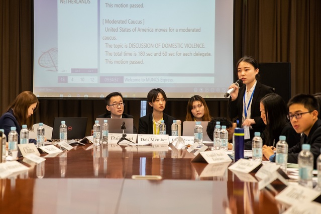 随后四天,代表们在会场上分别就“消除种族歧视”、“可持续发展目标”、“航行安全保障”、“妇女权益维护”、“中东政治局势”等国际政治中的热点问题和议题展开了激烈的辩论与磋商。各位代表或外语流利、侃侃而谈,或镇定沉稳、妙笔生花,用优异的表现为上海模拟联合国大会的十周年庆典增光添彩。