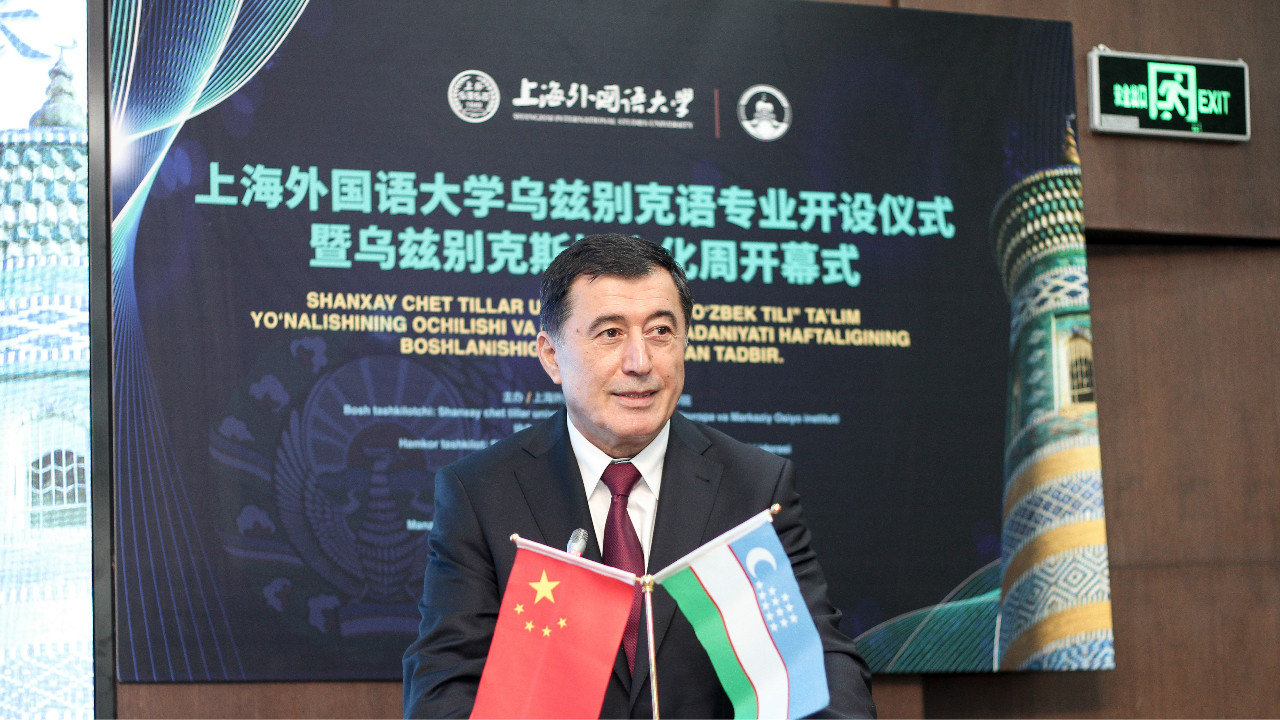 诺罗夫教授在致辞中表示,上海外国语大学启动“乌兹别克斯坦研究中心”、开设乌兹别克语专业并举办文化周等一系列活动,正是中乌双方在科教文领域不断加深合作的表现,在中国知名高校培养一批专业的乌兹别克语学者也将促进中乌历史传统的广泛传播,加深两国人民之间的友谊。诺罗夫教授特别指出,乌兹别克斯坦国内青年人对汉语学习的兴趣正在显著提升,塔什干和撒马尔罕的孔子学院形势大好,中资项目在乌兹别克斯坦的落地实施也使得“汉语热”进一步升温。在此大背景下,诺罗夫教授认为上海外国语大学举办的一系列活动在深化中乌双边互信关系中起着十分重要的作用,并对上海外国语大学乌兹别克语专业的开设和乌兹别克斯坦研究中心的成立表示衷心的祝贺。