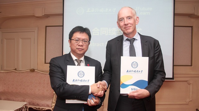 11月12日上午,上海外国语大学与英国大规模在线开放课程(慕课MOOCs)平台FutureLearn合同续约仪式在上海外国语大学举行,上海外国语大学校长李岩松与FutureLearn行政总裁西蒙·尼尔森(Simon Nelson)代表双方交换合作协议。国际文化交流学院院长张艳莉、国际教育学院常务副院长金慧、田小勇老师、教务处副处长王会花等出席续约仪式。续约仪式由对外合作交流处副处长王征主持。