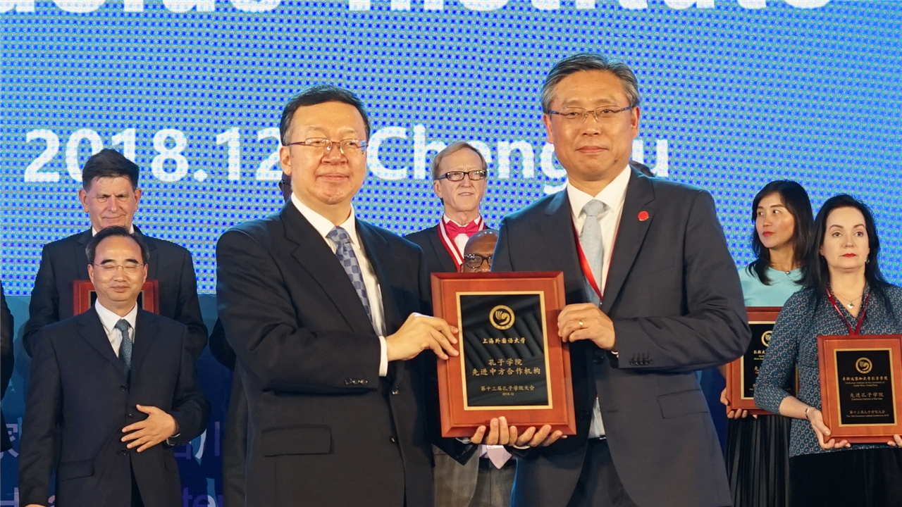 12月,上外加入中英高等教育人文联盟。与希腊亚里士多德大学签约共建上外第十所孔子学院。再获“孔子学院先进中方合作院校”奖。