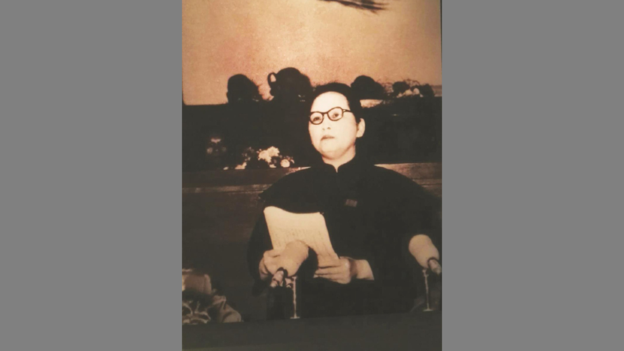 1952年12月,宋庆龄在维也纳世界人民和平大会发表《人民能够扭转局势》的演说。主席台布景是毕加索专为大会绘画的“飞翔的和平鸽”。 【摄影 | 】