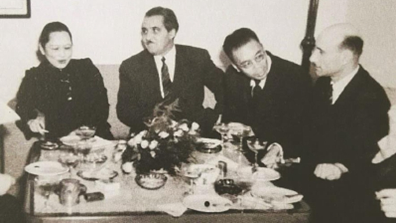 1949年10月,宋庆龄在上海私邸宴请参加开国大典的苏联代表团主要成员。左起:宋庆龄、西蒙诺夫、姜椿芳、格拉西莫夫。 【摄影 | 】