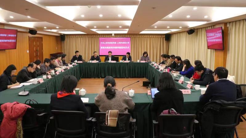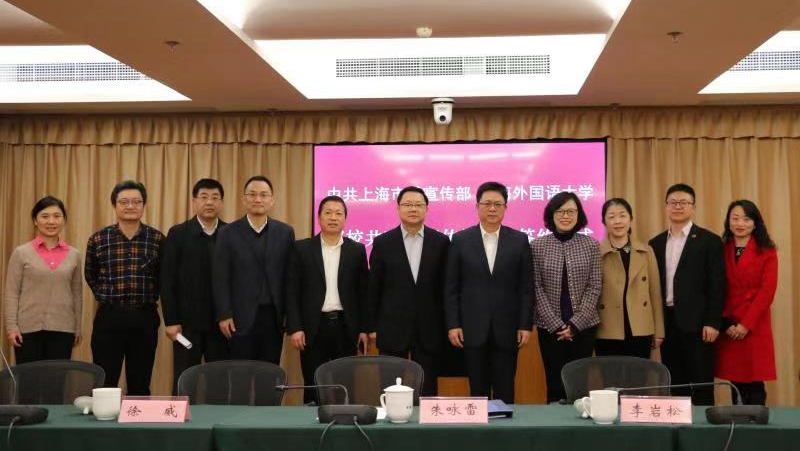 2月27日,上海市委宣传部与上海外国语大学签署共建新闻传播学院协议。上海市委副秘书长、宣传部副部长朱咏雷,上海市委外宣办主任、市政府新闻办主任徐威,市委网信办副主任杨俊,上海外国语大学校长、党委副书记李岩松出席签约仪式。仪式由市委宣传部部校共建新闻学院领导小组办公室主任孙卫星主持。