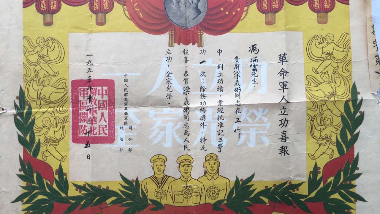 华北军区司令部给梁义彬母亲颁发的立功喜报 【摄影 | 】
