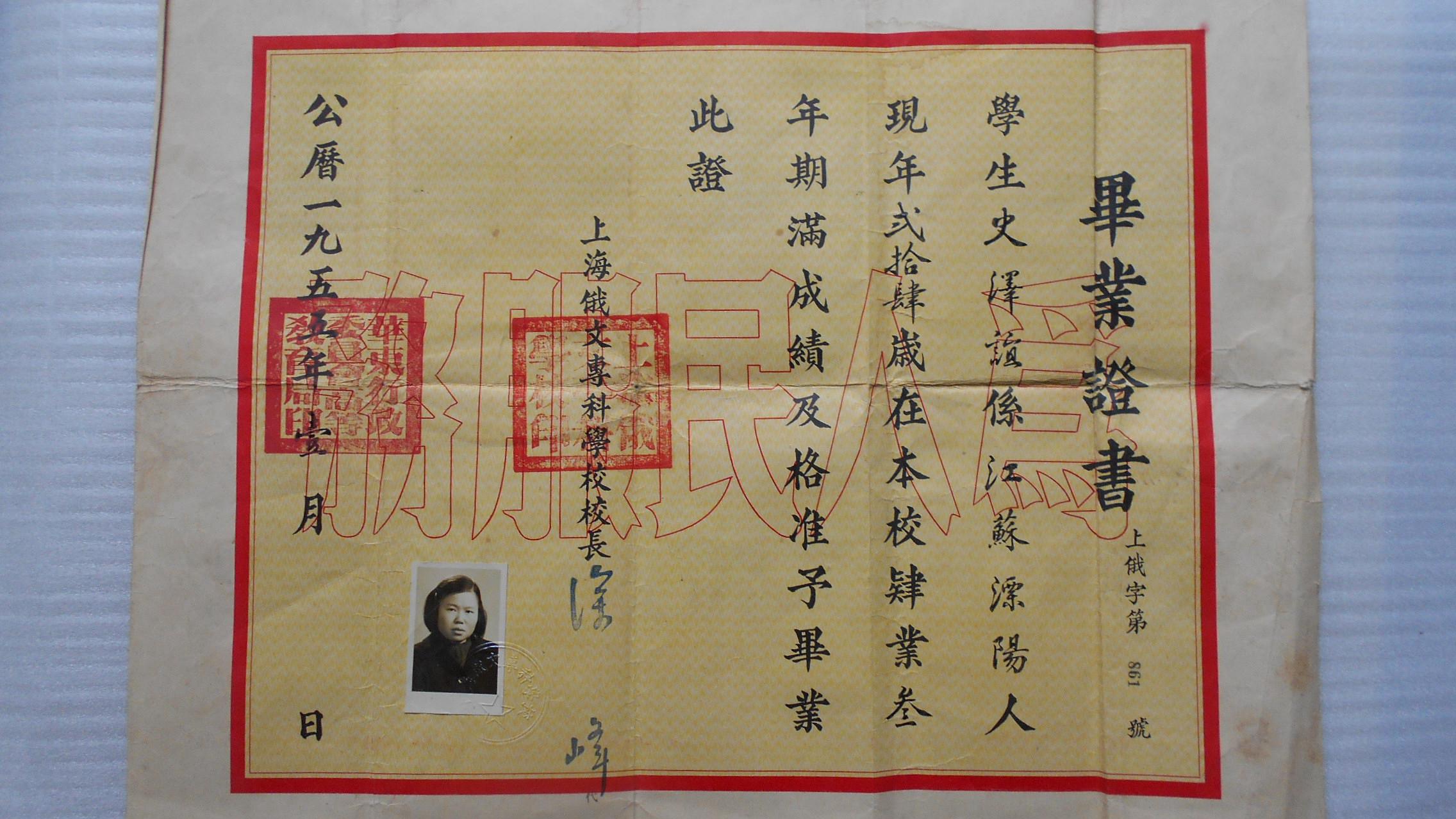 1955年上海俄文专科学校毕业证书 【摄影 | 】