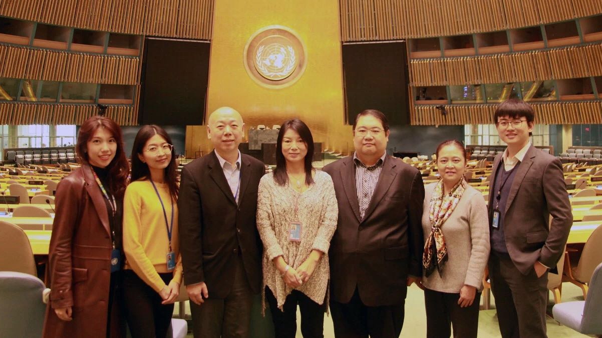 洪小彬(左二)实习期间与联合国全球传播部同事合影 【摄影 | 】