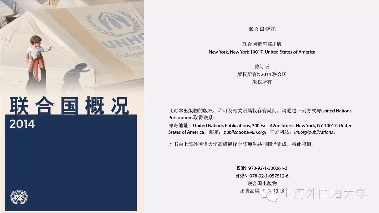 近日,联合国全球传播部与上海外国语大学高级翻译学院合作推出联合国官方出版物《联合国概况》(第42版),这是继双方合作完成《联合国概况》(第41版)之后的再次联手。