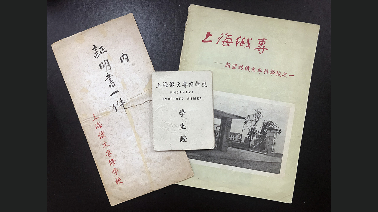 据了解,这批史料中涉及上海俄文专科(修)学校时期(1952-1956年)的各类文字材料有15件、上海外国语学院时期(1956-1994年)25件,包括学校信封、证明信、成绩单、毕业照、毕业证明、招生宣传册等。另有12件学校各时期校徽和大铜章,以及7件年历卡、书签、明信片等,史料形式体裁极为丰富。