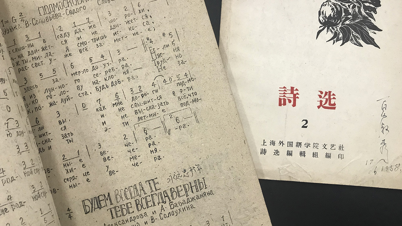 此外,史料中有关上外办学期间的校刊和学术刊物也较为完整,包括《上海俄文专科学校校报:实践(旬刊)》、《上海俄专》1955年创刊号、《上海外国语学院季刊》1958年创刊号、《上海外国语学院校报》1958年第50期等。颇具亮点的是,这些刊物中还有当年学生会编印的《俄文歌曲集》《诗选》《歌选》等,充分展现上世纪五十年代上外丰富多彩的校园活动和文娱生活。