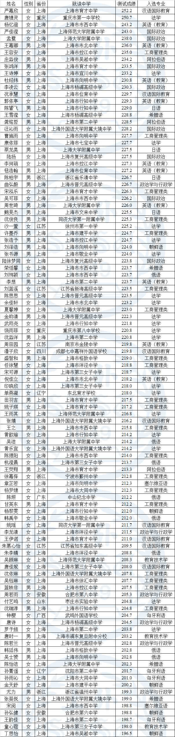 上海外国语大学2019年自主招生入选资格考生名单公示