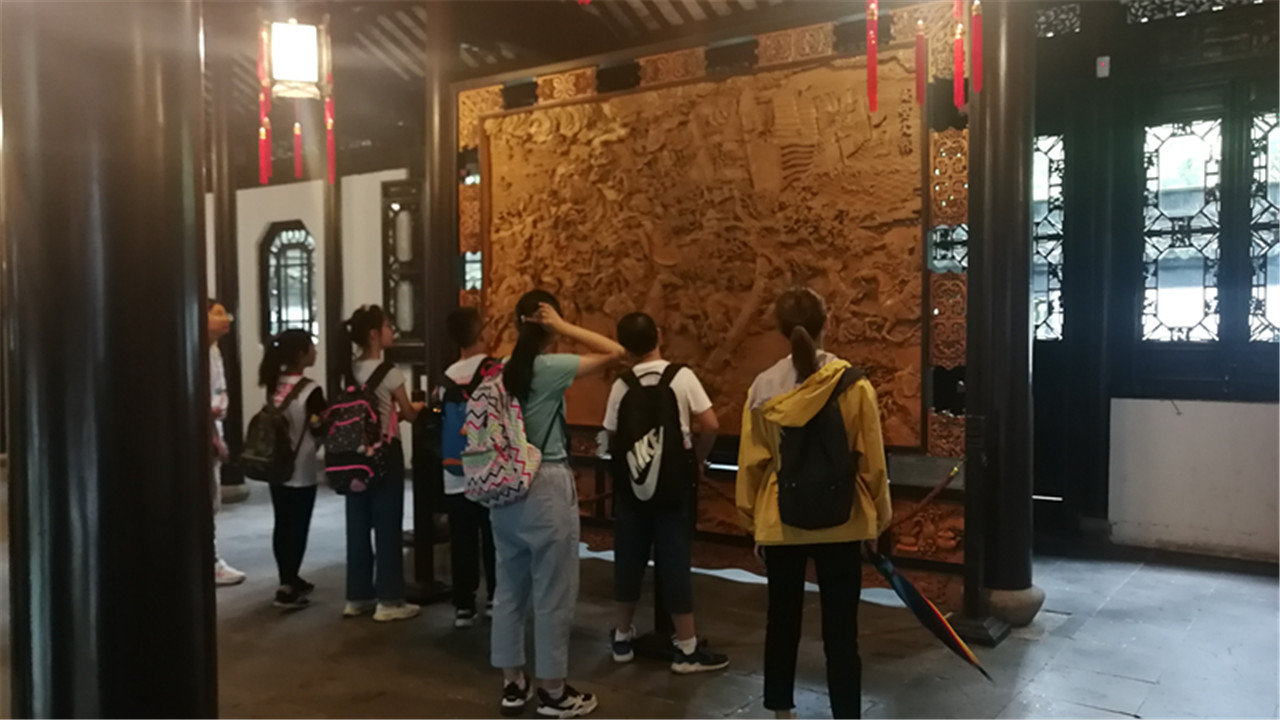 在上海松江,国际教育学院“走读松江”残障家庭子女文化浸润营将目光放在上海松江本地需要帮助的群体中,将公益支持的途径聚焦于松江本土的优势资源上。国际教育学院公益实践团的学生立足学院特色,发挥学院教学专长,组织一批教育学相关专业的学生成立“走读松江”教师团,充分实践教育学专业技能,发挥语言专长,编写专题教学手册,以“文化浸润”为主轴,融合实地体验、趣味课程和作业辅导等多维教学方式;以“走读松江”为核心,充分挖掘松江的本土区位优势和文化命脉。在体验式浸润教学的文化寻根版块中,老师带领孩子们去往醉白池和方塔园,看遍了古色古香的园林建筑和艺术瑰宝。经过前一天的文化预备课程,孩子们不需要导览的讲解,也能自己发现有趣之处,比如方塔园照壁的故事和历史价值,雕花厅内的赤壁之战图样,还有著名松江著名历史文化名人董其昌的塑像。趣味英语课,在开放、自由的课堂氛围内鼓励孩子们开口说英语的同时,鼓励来自特殊家庭的孩子思考理想的亲子关系;环球之旅课,以开拓眼界、丰富知识为目的,让孩子们初步体验全球化视野的魅力和人类命运共同体的责任;阅读探微课程,让孩子们在经典名段中体悟中华传统文化与精神所蕴含的价值理念。教师团的“小老师们”在当下兼具“学生”与“教师”的双重身份,通过文化浸润的教学体验,他们感悟到:真正的教育不是灌输,而是点燃火焰。让孩子们在课堂内外看到中华文化的蓬勃生命力和民族精神的不息力量,才能在学习领会知识的同时,唤起他们对优秀传统文化的自信。志愿教师们在教育引导孩子们成长的同时,也在践行着大学生的担当和使命。不忘初心,发出自己的光和热,便是青春最好的模样。