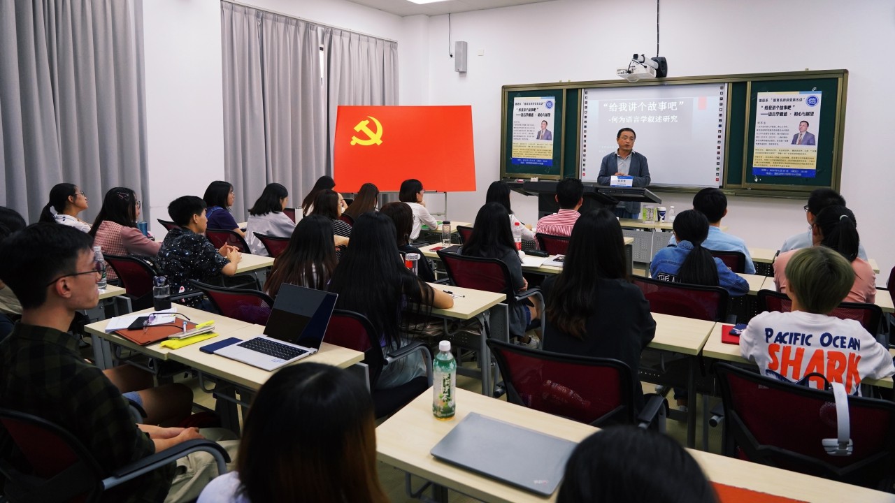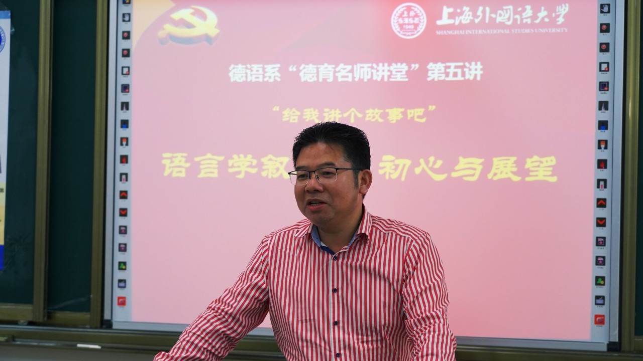 9月27日下午,德语系“德育名师讲堂”第五讲——“给我讲个故事吧”——语言学叙述·初心与展望在松江校区三教楼举办。本次讲座邀请德语系杰出校友、广东外语外贸大学教授刘齐生担纲主讲。系党总支书记谢建文教授出席了讲座,德语系学生党员、分党校学员参加了讲座。讲座由系党总支副书记田力娜主持。