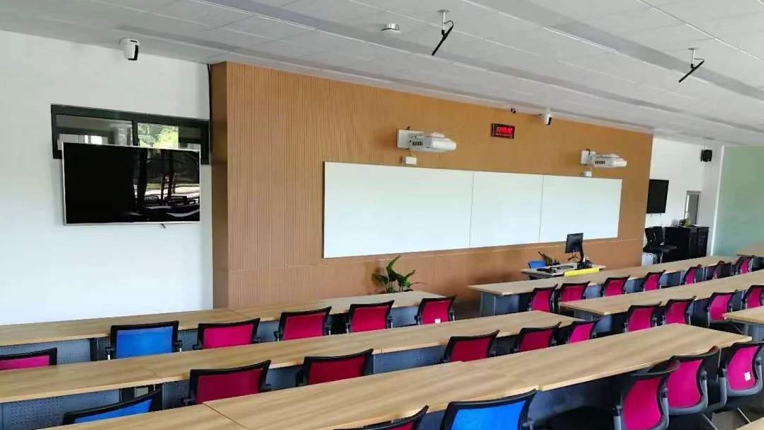 教学需要在哪儿,资金资源就要投入到哪儿。本学期,学校首批14间智慧教室顺利投入到了教学一线。在这里,教室不但长了“智慧眼”,分布在教室角落的高清摄像头全程自动跟踪录制授课现场,学生可以在视频资源平台下载观看课堂录播视频,更为重要的是,这些教室利用一系列“黑科技”,打破了传统授听课方式,学生和教师之间可以通过互联互通设备充分互动,及时反馈,形成了以学生为中心,以互动性、探究式和研讨式教学为主体,以翻转课堂、混合式教学等多种方法为依托的智慧化教学、学习和管理模式。