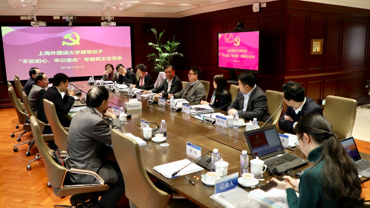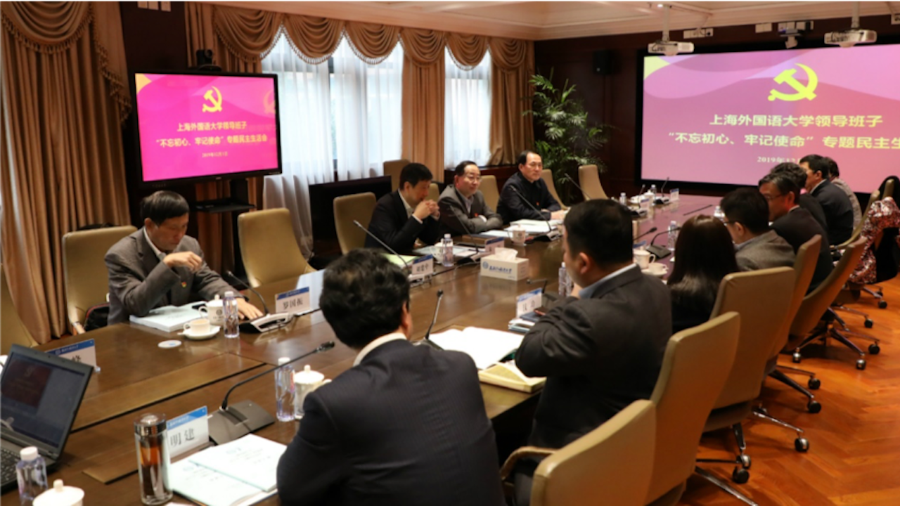 不忘初心、牢记使命,是加强党的建设的永恒课题,是全体党员干部的终身课题。开好专题民主生活会,是学校领导班子 “守初心、担使命,找差距、抓落实”的一次政治体检,是检验主题教育成效的一项重要内容。姜锋首先报告了会前准备情况。这次专题民主生活会围绕“不忘初心、牢记使命”主题,以深入学习贯彻习近平新时代中国特色社会主义思想、十九届四中全会精神和习近平总书记考察上海重要讲话精神,进一步增强“四个意识”、坚定“四个自信”、做到“两个维护”。学校领导班子成员按照习近平总书记关于“四个对照”“四个找一找”的要求,盘点收获、检视问题、剖析根源,把思想统一到坚持立德树人根本任务上来、统一到为建设“区域国别和全球知识领域特色鲜明的世界一流外国语大学”上来。