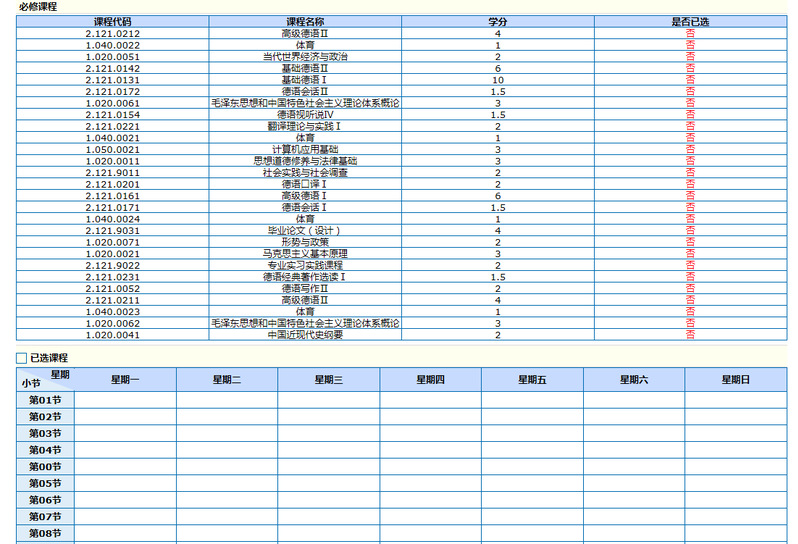 2.从本学期起,必修课建议列表也能从选课列表中查询: