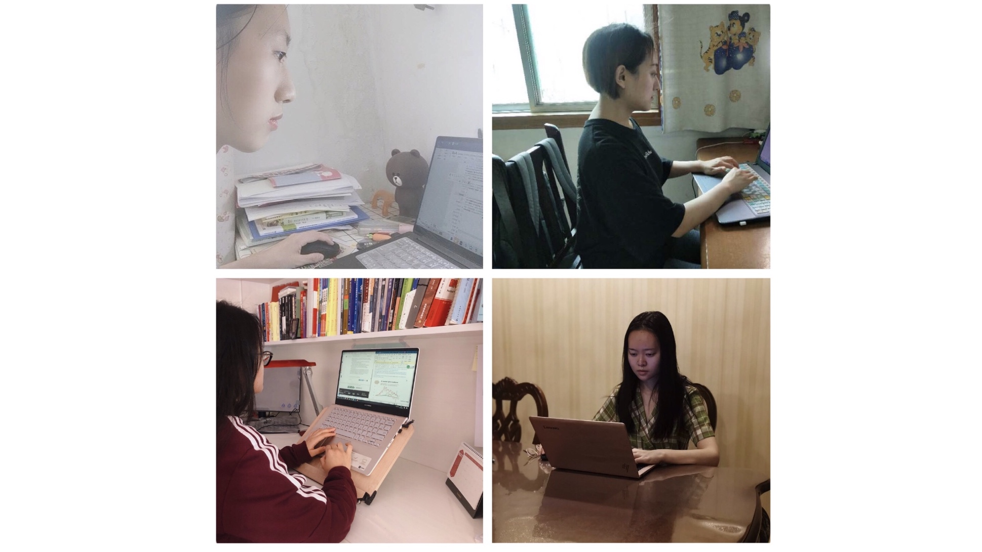 来自不同院系语种专业的同学们参与疫情动态编写(左上:葛伊人,右上:李征宇,左下:张嘉欣,右下:胡晓雯) 【摄影 | 】