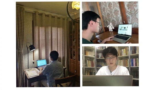 来自不同院系语种专业的同学们参与疫情动态编写(左:付博锐,右上:滕小乐,右下:杨肇祎) 【摄影 | 】