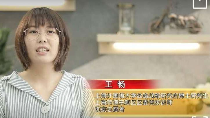 王畅的硕士和博士阶段都就读于上外,师从丝路战略研究所所长马丽蓉教授。作为上外丝路战略研究所《新丝路学刊》的责编,她在“上外丝路”微信公众号上撰文,讲述了自己作为疫情防控志愿者的体验和感触。她表示,“真情会超越性别、年龄、阶级、肤色、种族”。面向未来,自己愿做“坚信人类的光辉定会超越共同面临的病魔、利益纷争、政治纠纷的理想主义持灯者和志愿者”。