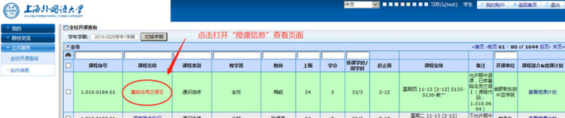 2.全校开设课程在教务系统均会公布,学生可通过教务系统的“公共服务”—“全校开课查询”栏,根据自己需要的字段输入搜索,查询所有课程。自第3教学周开始,可在该栏目查询课程的授课计划和授课信息;