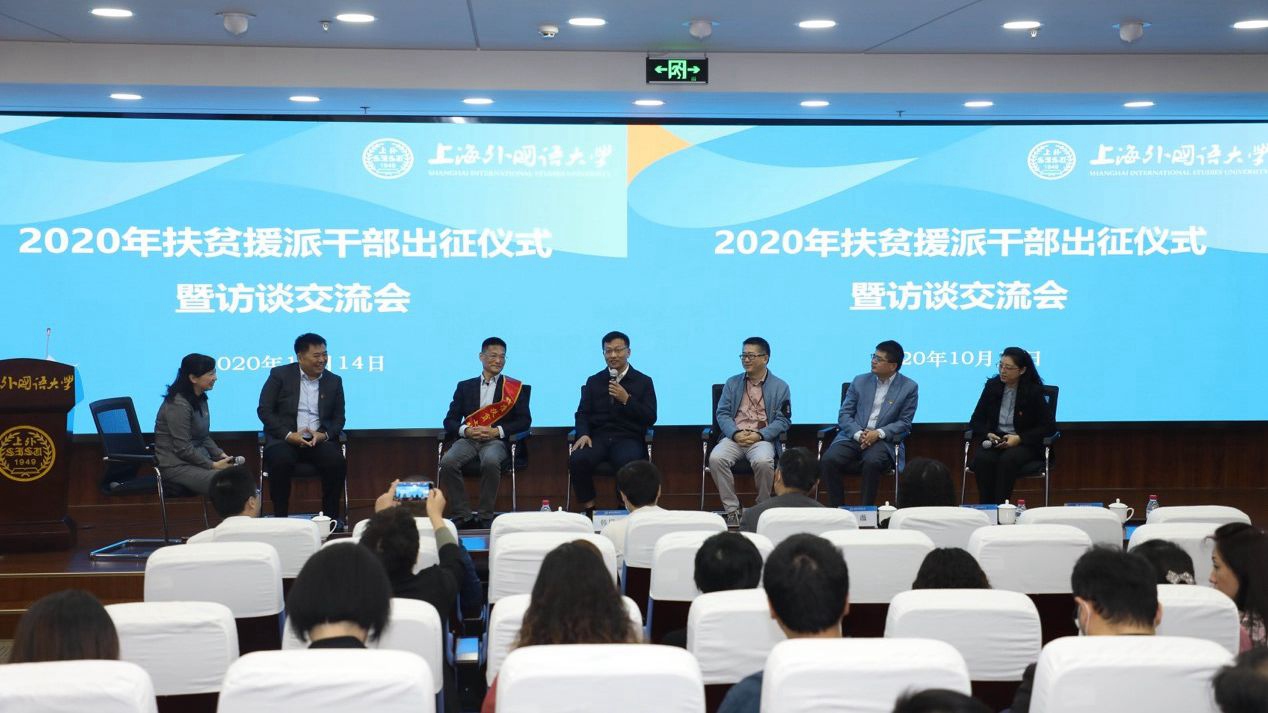 2020年是全面建成小康社会目标实现之年,也是全面打赢脱贫攻坚战的收官之年。自2013年起,先后共有13名上外干部教师投身西部扶贫攻坚事业,用大爱诠释初心使命,谱写了精准扶贫的壮丽篇章。作为学校“立德树人守初心,教育扶贫担使命”国家扶贫日系列活动之一,本次“扶贫援派干部出征仪式暨访谈交流会”再现了学校援派挂职干部的扶贫足迹,集中展示了援藏、援疆、援滇干部教师在派出地区积极参与国家脱贫攻坚事业,不忘初心、勇担使命的优秀事迹与动人故事。
