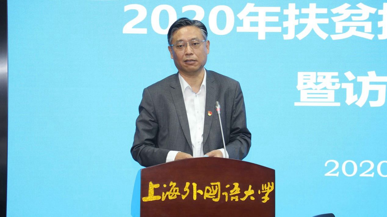 10月14日,上海外国语大学“扶贫援派干部出征仪式暨访谈交流会”在松江校区国际教育中心举行,校党委书记姜锋出席活动。