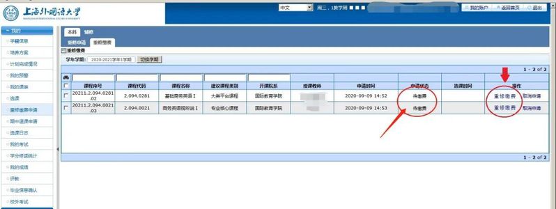 缴费成功后即可通过查看“我的课表”或者“选课日志”确认课程已成功申请重修。