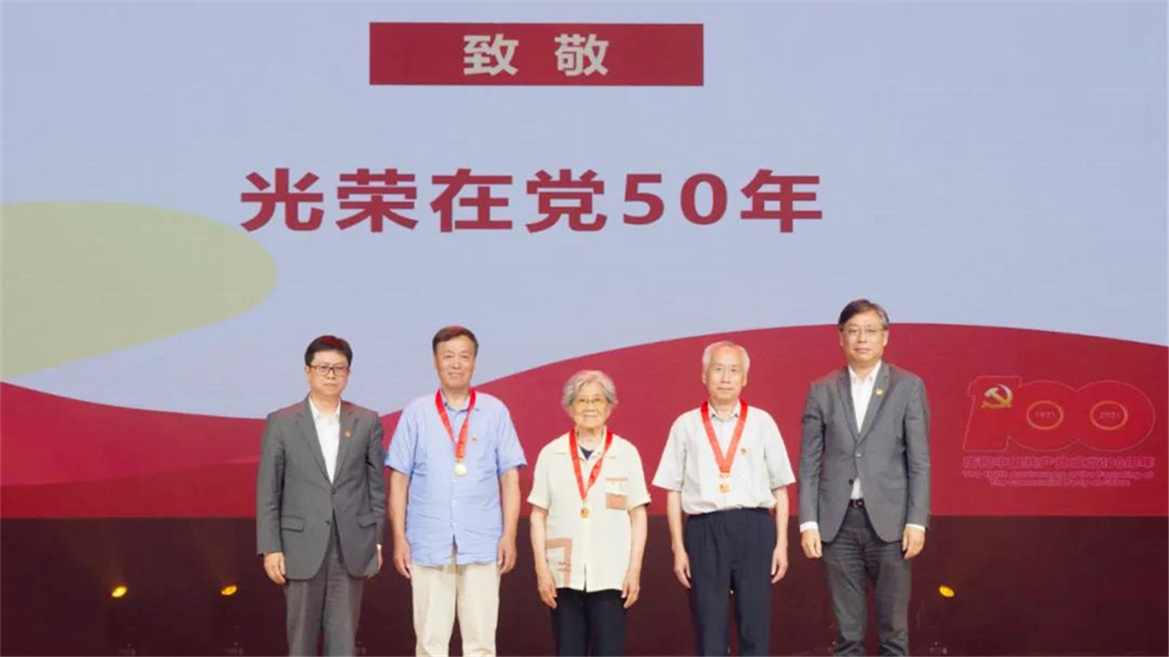 “看到这一排排上台领奖的年轻人,我感觉我们党的事业后继有人啊!”作为“光荣在党50年”纪念章的110名党员获得者代表,有67年党龄的上外老领导朱丽云教授感慨道,“我也感到现在青年师生党员身上的担子很重。不仅要扎根中国,还要放眼世界,用扎实的外语向世界展现立体真实的中国,把国际话语权牢牢得握在自己的手中。”