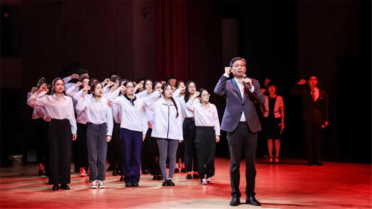 在党委书记姜锋的带领下,新党员进行了入党宣誓,全场党员重温入党誓词。