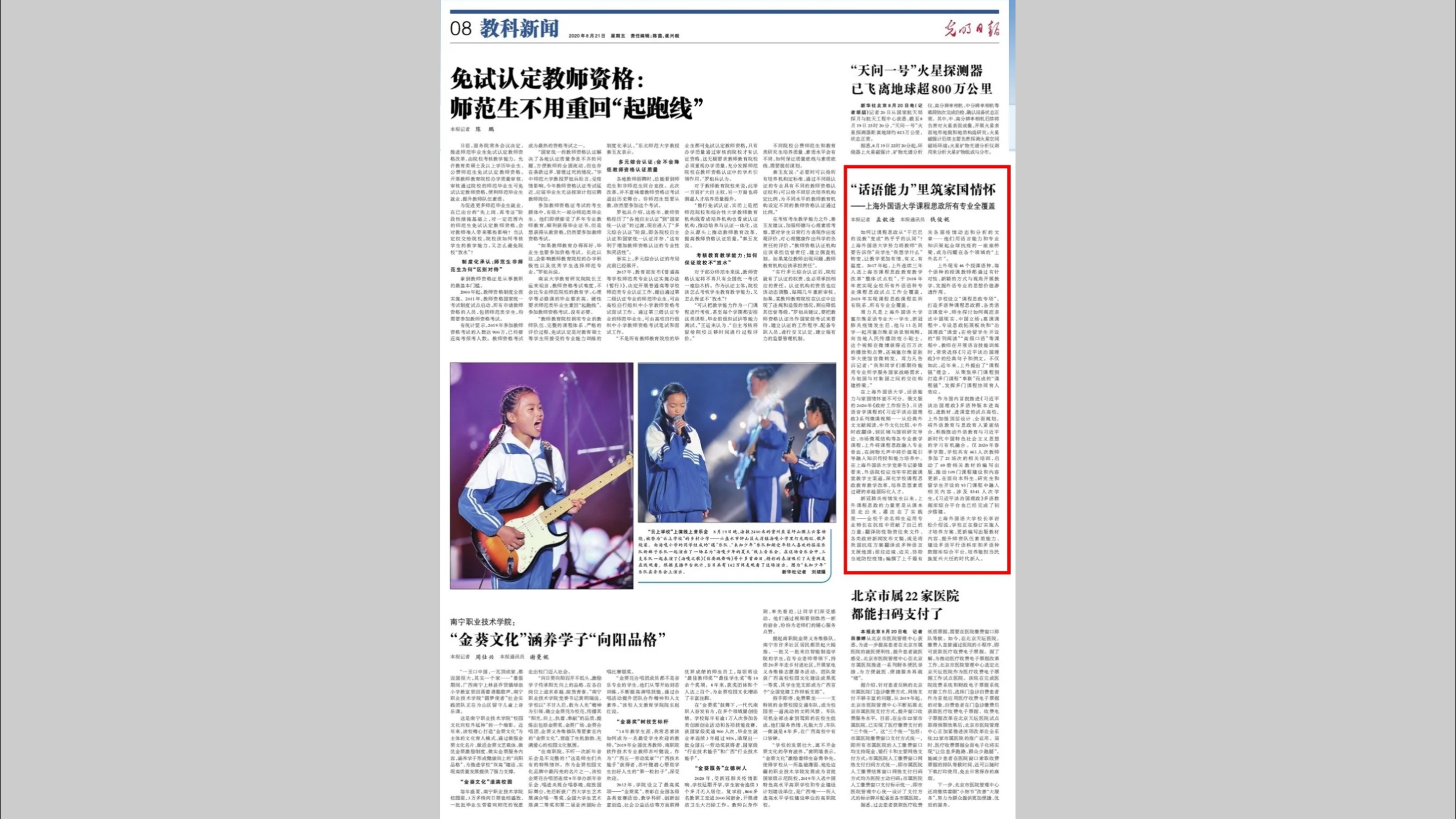 《光明日报》报道:《“话语能力”里筑家国情怀——上海外国语大学课程思政所有专业全覆盖》 【摄影 | 】