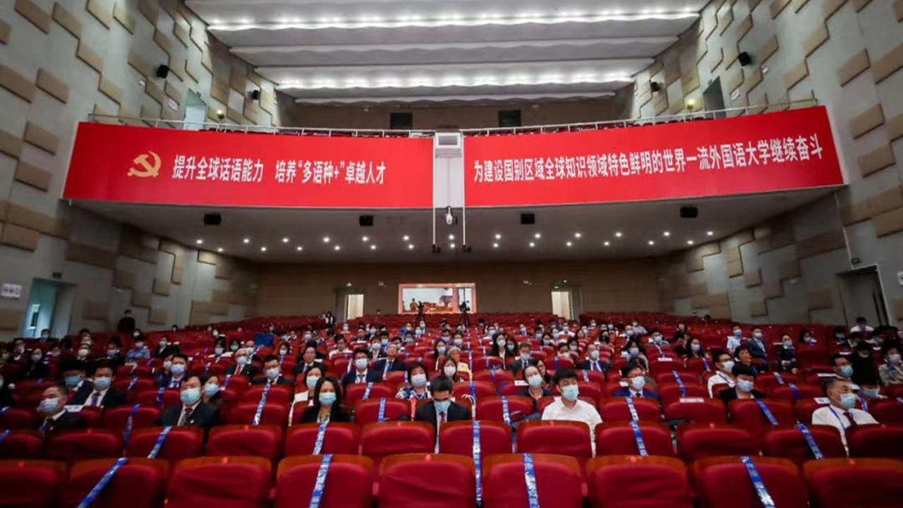 大会在雄壮的国歌声中开始。主席台上方正中悬挂着中国共产党党徽,两边是十面鲜艳的红旗。会场内“提升全球话语能力 培养“多语种+”卓越人才 为建设国别区域全球知识领域特色鲜明的世界一流外国语大学继续奋斗”的标语格外醒目。北京大学、复旦大学、北京外国语大学等近40所兄弟院校以及学校各民主党派基层组织、校工会组织向大会发来贺信。
