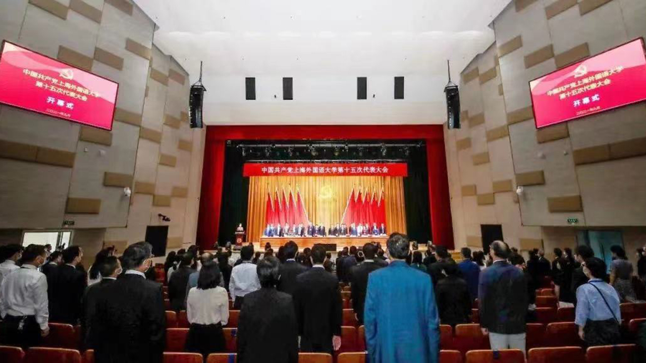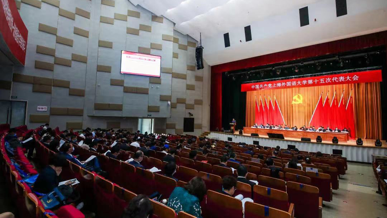 2021年9月25日上午,中国共产党上海外国语大学第十五次代表大会隆重开幕。本次大会主题为:高举中国特色社会主义伟大旗帜,坚持以习近平新时代中国特色社会主义思想为指导,全面贯彻党的教育方针,落实立德树人根本任务,提升全球话语能力,深入推进“多语种+”办学战略,努力培养担当民族复兴大任的时代新人,为建设国别区域全球知识领域特色鲜明的世界一流外国语大学继续奋斗!