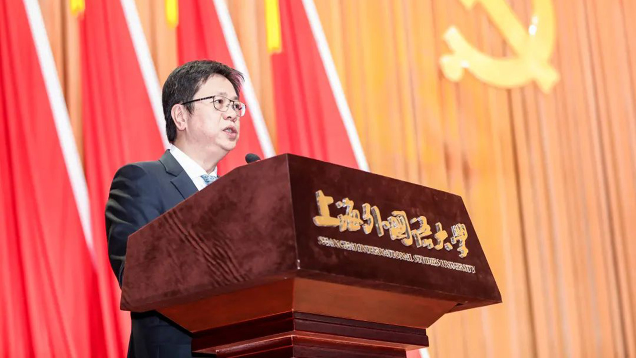 姜锋号召全校党员和广大师生员工,立足时代“两个大局”,秉持“跨、通、融”三大原则,不断提升“四力”,瞄准“五地”目标,落实“六跨”协同,为建成国别区域全球知识领域特色鲜明的世界一流外国语大学不懈奋斗,为民族复兴大业和构建人类命运共同体持续作出应有的知识和智力贡献!