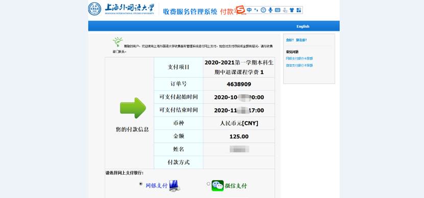 学生须在规定时间内缴费以完成期中退课程序。操作如下图:
