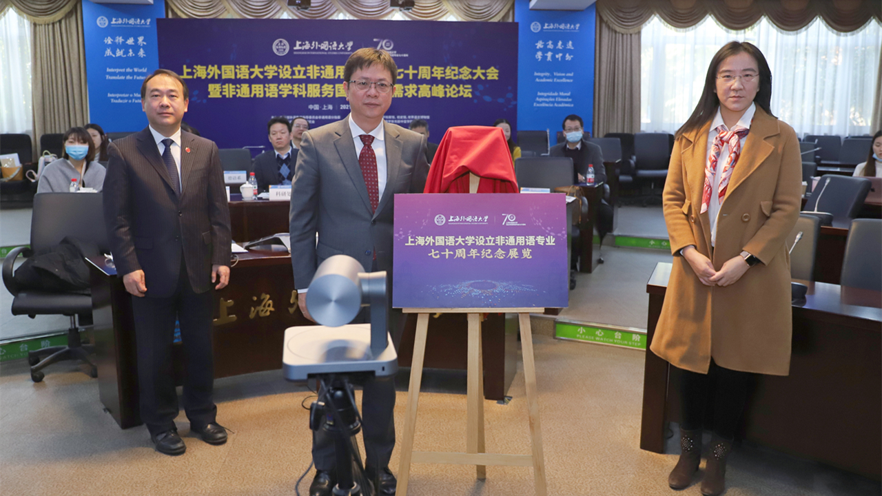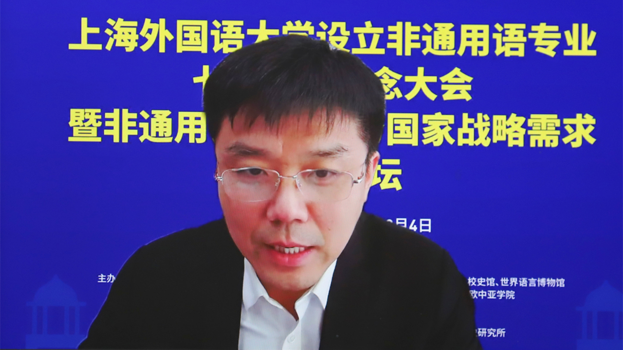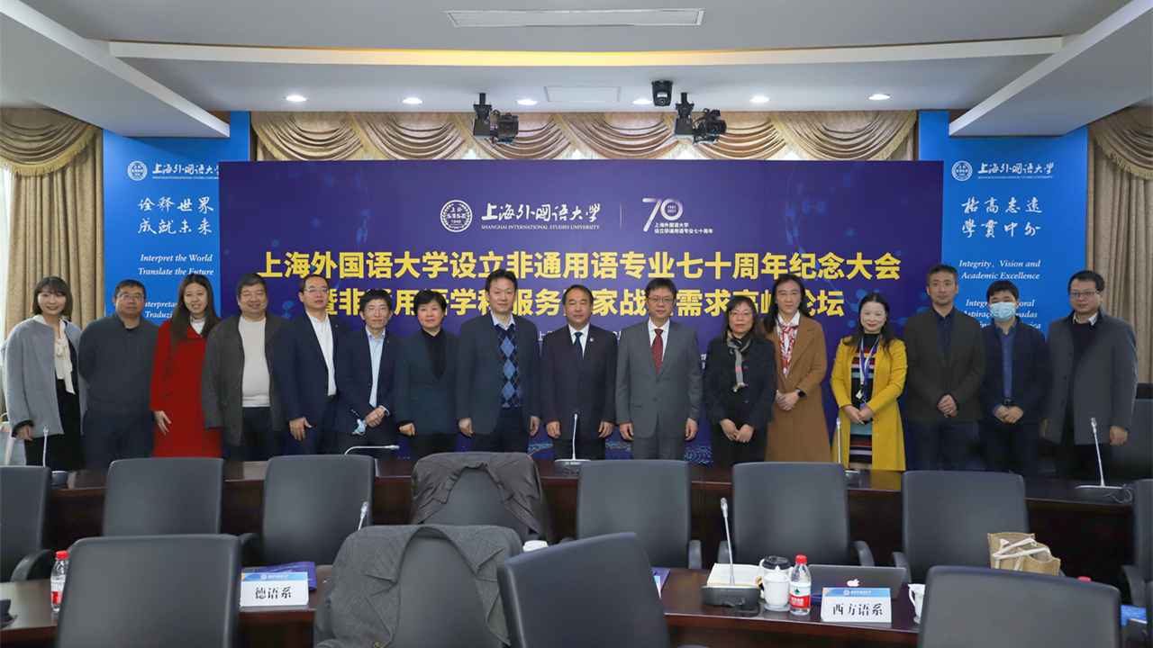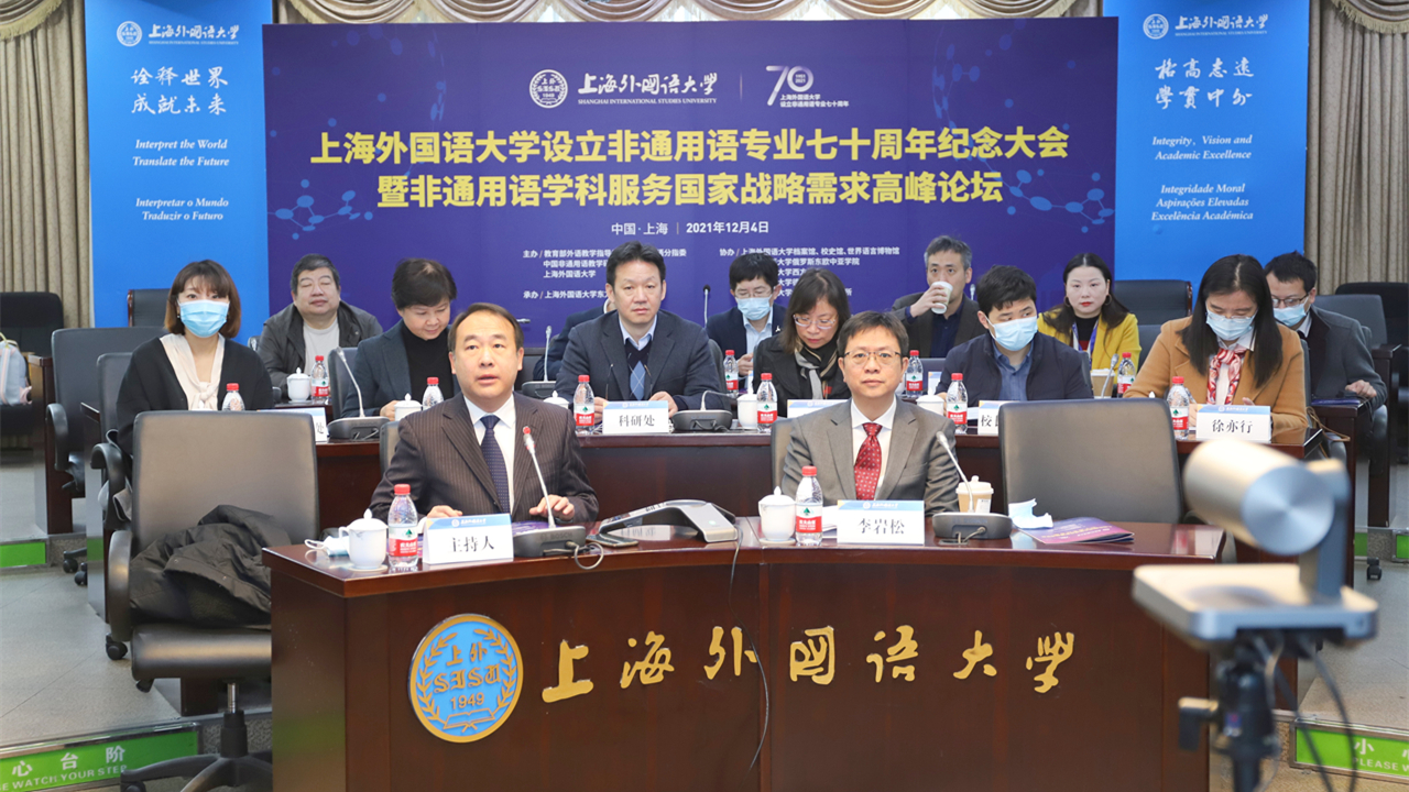 12月4日,“上海外国语大学设立非通用语专业七十周年纪念大会暨非通用语学科服务国家战略需求高峰论坛”以线上线下相结合的方式在上海外国语大学虹口校区举行。本次会议和论坛由教育部外语教学指导委员会非通用语分指委、中国非通用语教学研究会和上海外国语大学联合主办,上海外国语大学东方语学院承办。