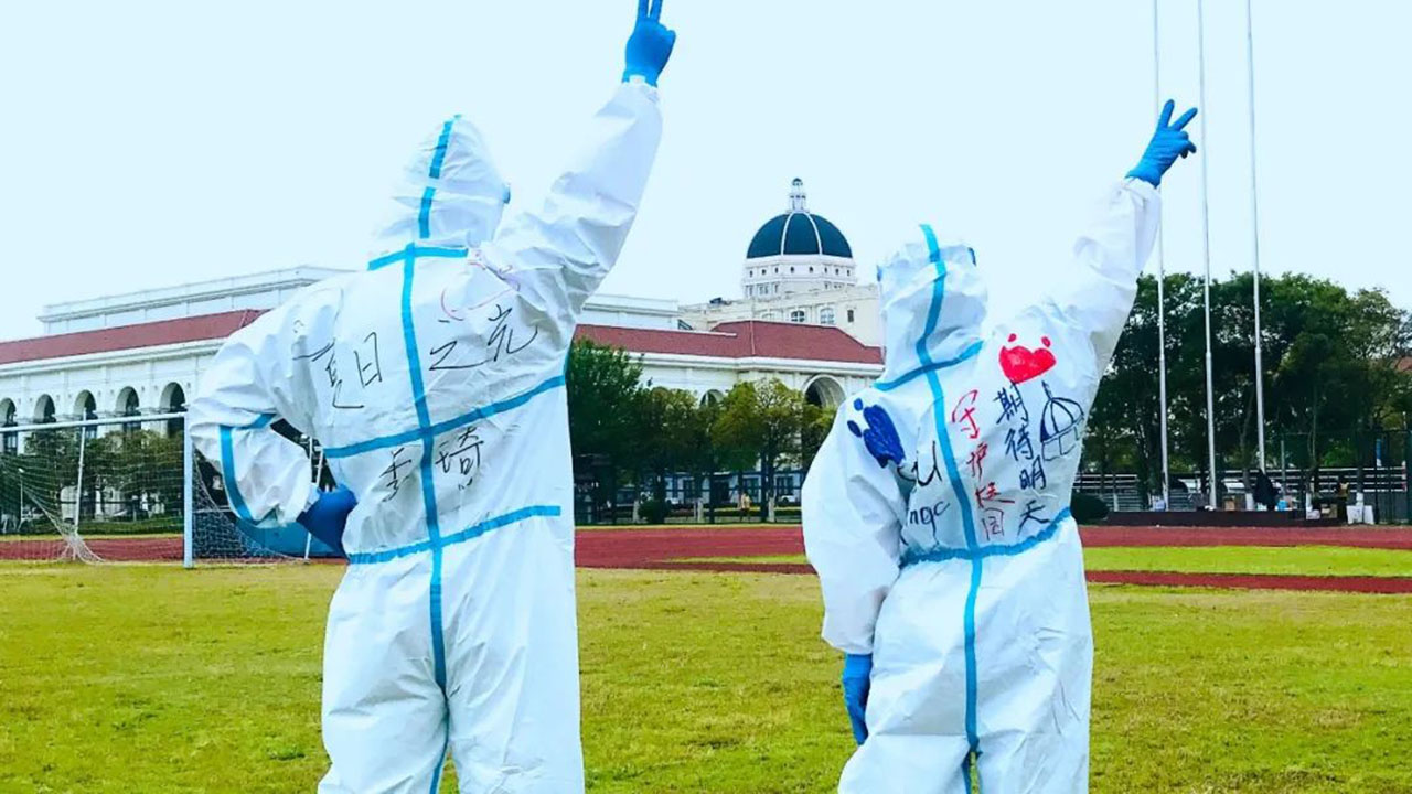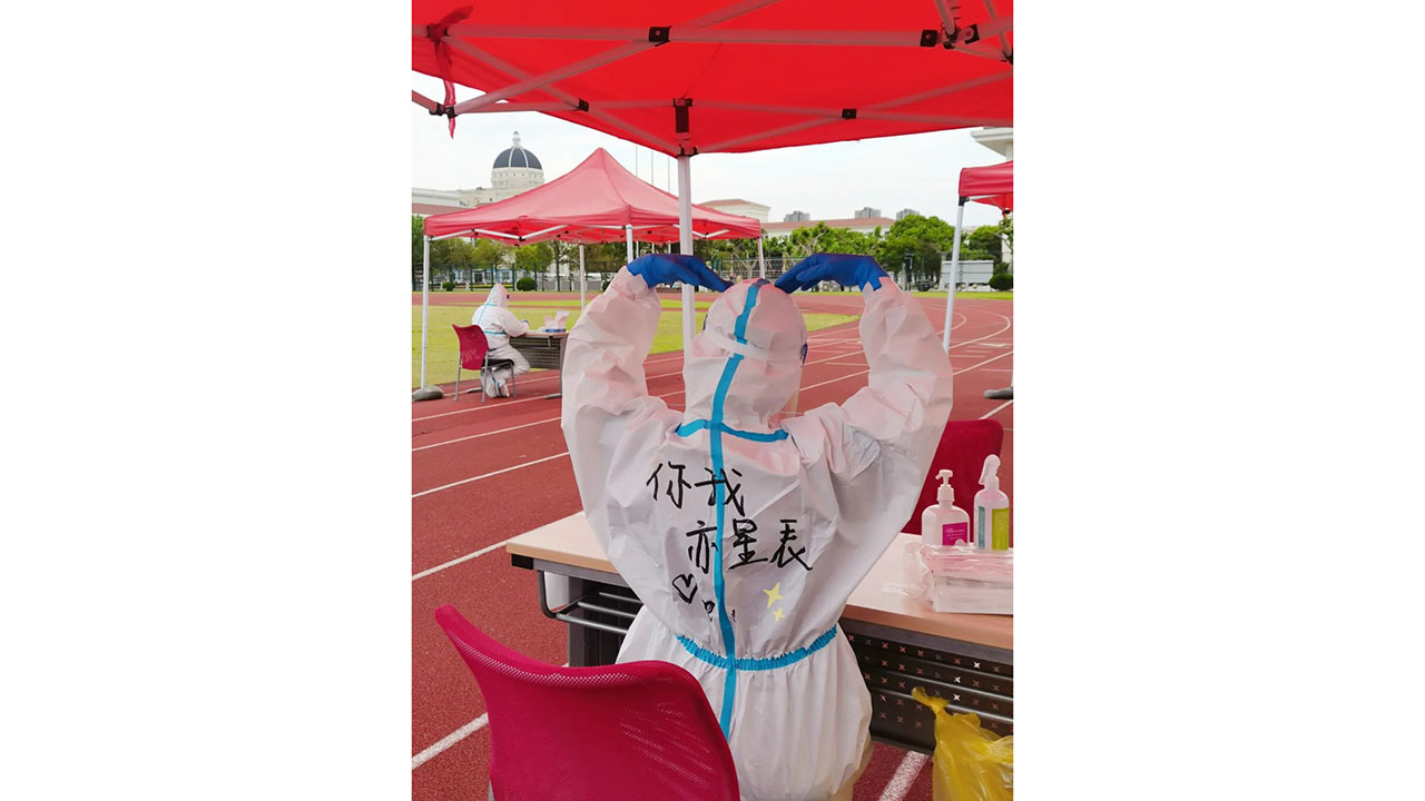 “今天核酸检测的大白好温柔”“那双眼睛好熟悉”,4月末的一天,松江校区的同学们对“大白”产生了好奇。一番讨论后,不少人认出里面竟然有日夜陪伴了大家两个月的驻楼老师、辅导员还有任课教师们......