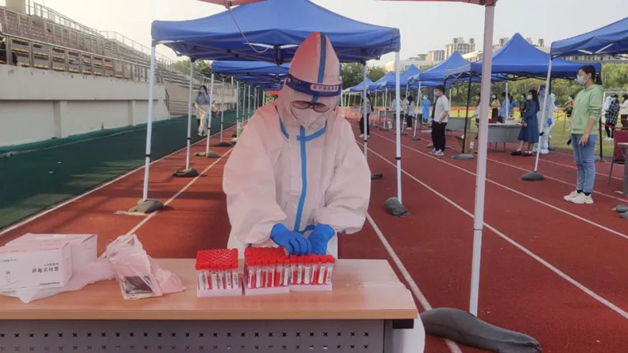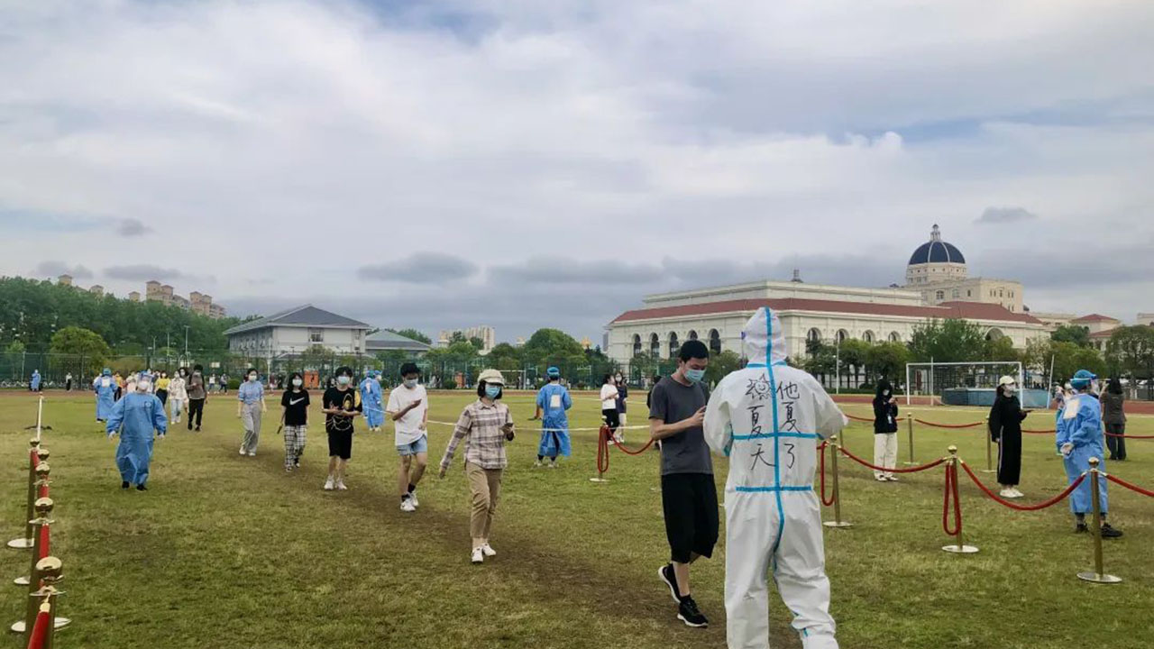 这些有爱的“大白”是谁?原来,为应对全员核酸检测工作量的提升,同时最大程度减少特殊时期校内外人员流动、避免交叉感染,自4月初起,学校筹备组建自主核酸检测采样队伍。随着一批教职工积极报名响应,经过多轮培训、考核,一支主要由校门诊部医务工作者与教职工志愿者组成的核酸自主检测队伍上岗了。