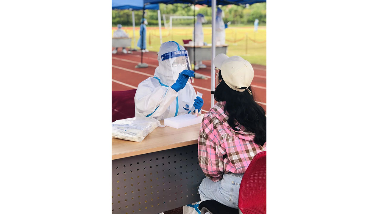 “在老师和学生们的鼓励中,感觉自己又为学校多出了一份力。”施海倩老师在谈到自己的采样经历时如是说,“现在老师们采样的手法已经越来越娴熟了,我前几天还打破了自己的记录,2小时采了400人。”