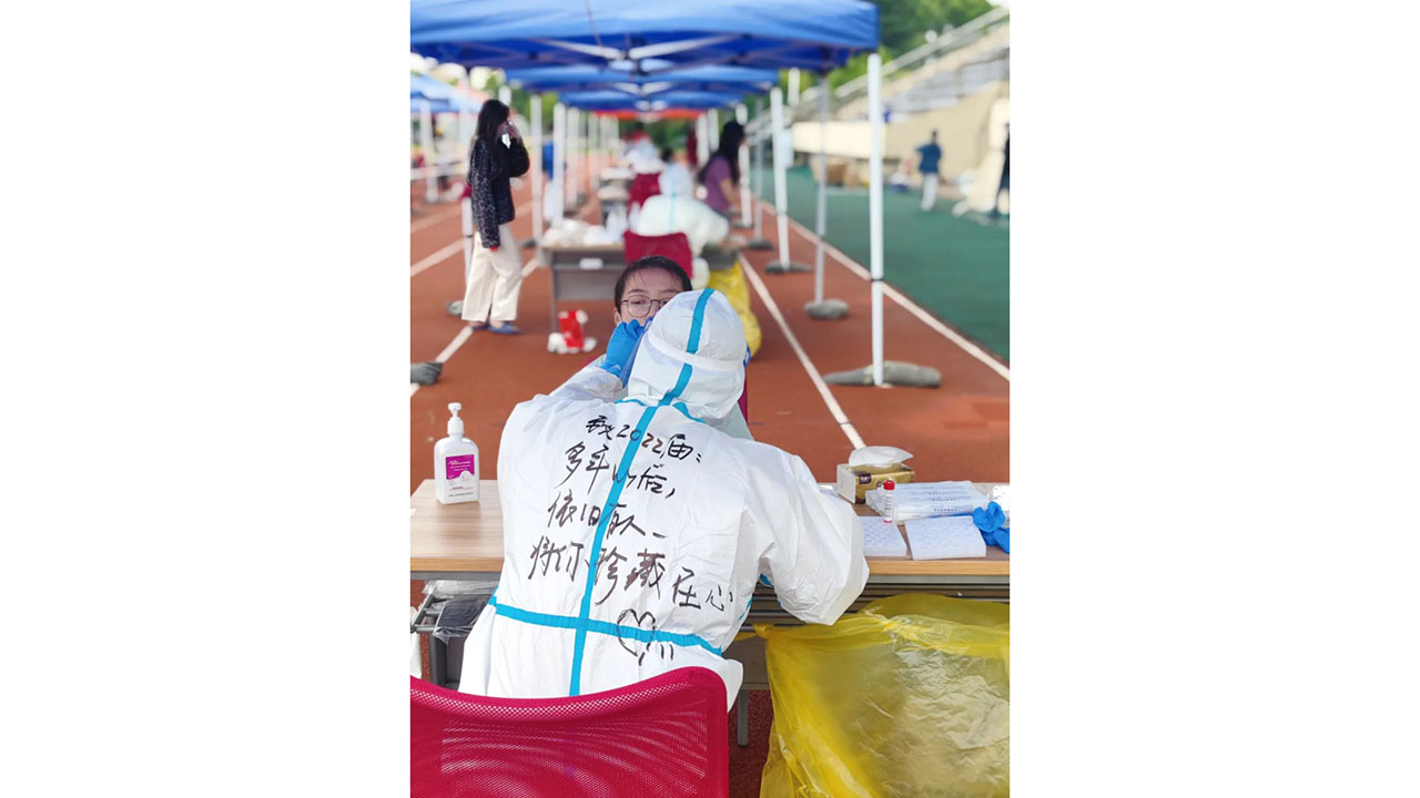 “4月26号那天我承担了教学区研究生公寓一号楼的的核算采样工作,一开始我蛮忐忑的,但后来采样结束后,驻楼老师给我看了一号公寓的同学们对我今天工作的评价,才发现原来我的工作得到了他们的认可,我一下子就释然了。他们都评价说,今天的大白最温柔、这是做了20多次中感受度最好的采样经历了......”西方语系党总支书记施海倩老师说。