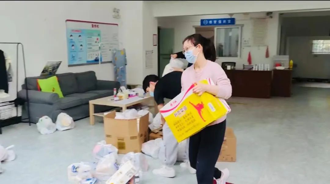 三餐发放、抗原检测、核酸检测、小卖部订购送货......驻楼工作加量不少,“作为新人,楼里两位老师都很关照我,我想尽可能地多学一点多做一点”,朱波老师和同楼的两位老师迅速调整工作模式,互相配合,开启了全天候沉浸式驻楼:拎起十多份盒饭一口气爬上六楼不是难事儿,物资清点发放流程已经熟练于心,每日核酸检测与医护人员配合顺畅,遇到同学生病头晕呕吐,帮助清理床铺、晒洗被子,特殊时候承担起全楼的垃圾清运.......“有时候忙完了白天工作,晚上也不敢休息太早,生怕错过了同学的信息”,他们知道,这是摒牢不松懈的关键时刻。
