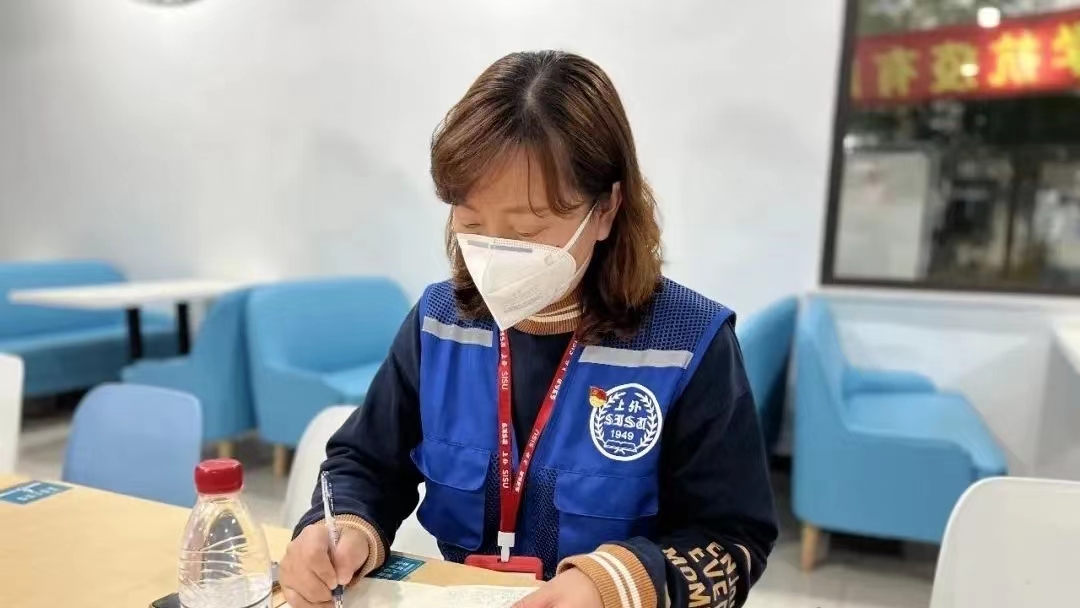 志愿者上岗前,她会协调好充足的防疫物资,进行岗前安全提示,帮助他们穿好防护装备;在志愿者工作时,她会在现场观察不同岗位上志愿者们的状态,协调解决各类问题;核酸检测常规化后,她也十分注重来自志愿者们的声音,收集志愿者们的意见反馈,并对志愿者分工做出优化调整。