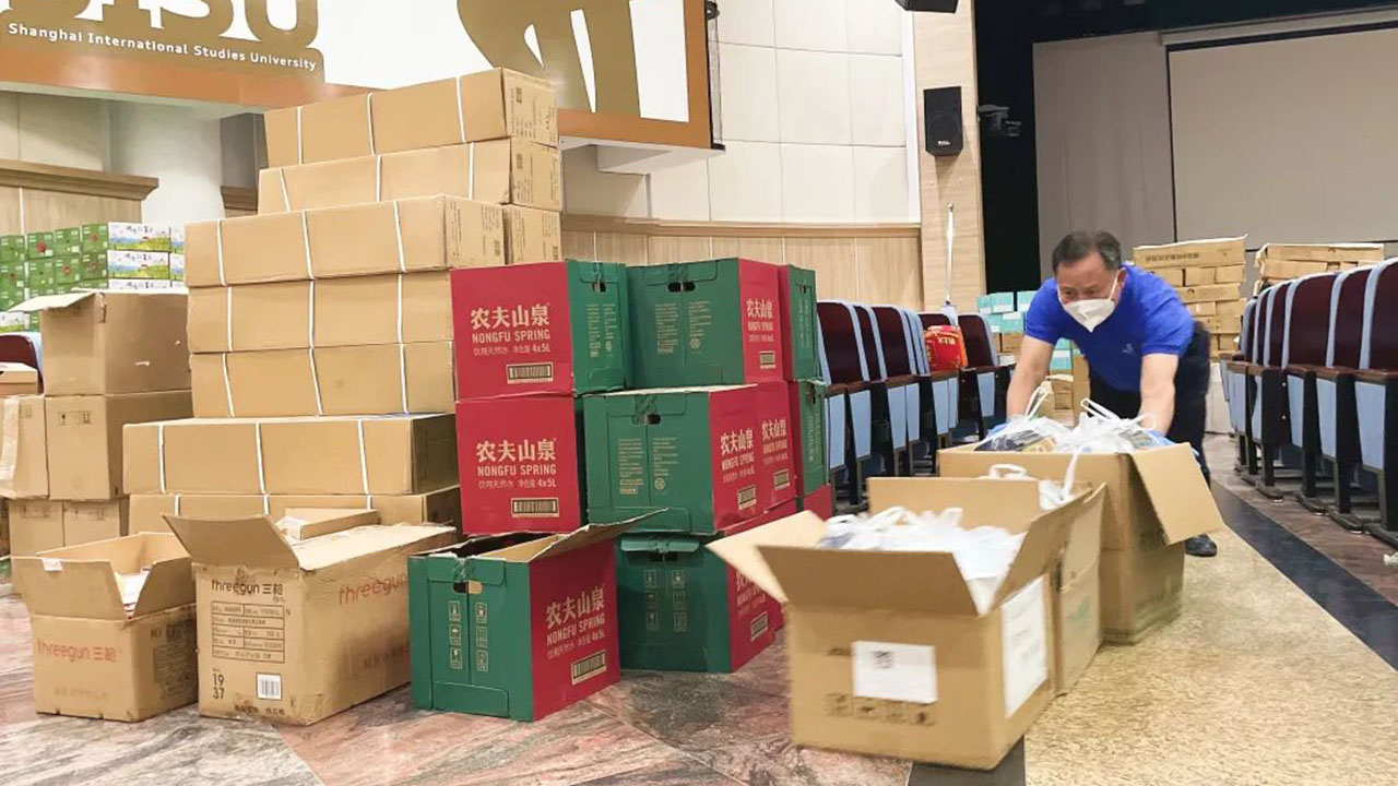 “明天有新增驻楼老师进校,我想提前为他们准备好日用品,这样老师们一进来就可以顺利开展工作、安心生活了”,深夜近12点的虹口校区,忙碌一整天的留校教职工们渐渐进入梦乡。在存放防疫物资的逸夫会堂里,还亮着暖暖灯光......后勤工作管理处的唐志明老师还在为第二天进校工作的老师打包生活物资。