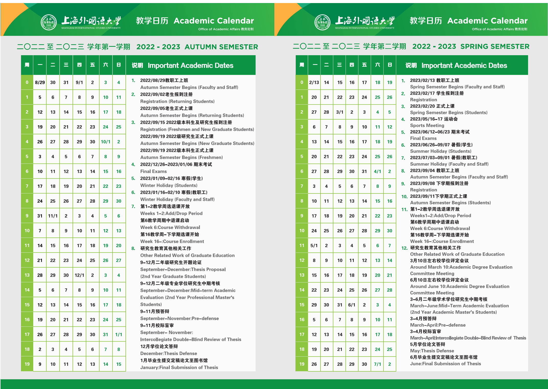 2022-2023学年教学日历