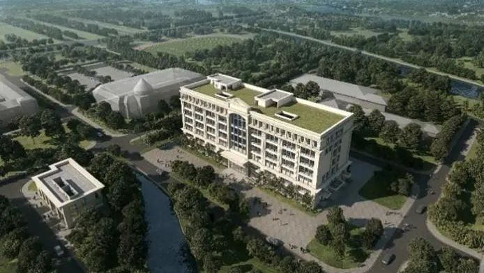 在上外松江校区中央区域,毗邻校内人流量最高的图文信息中心与师生活动中心,一栋地上7层、地下1层,总建筑面积达1.8万平方米的新地标建筑即将拔地而起。大约一年后,中外师生就将汇聚于此,围绕区域国别研究与教学,开展丰富的智慧教学探索与深入的研讨交流——这一熠熠发光的建筑新名片,正是师生期待已久的上外全球治理与区域国别研究大楼。