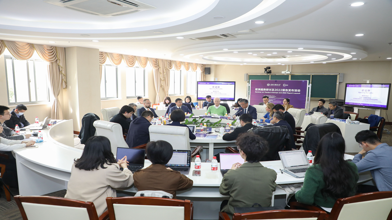 上海外国语大学上海全球治理与区域国别研究院、教育部中德人文交流研究中心于3月8日上午联合举办欧洲趋势研讨暨《欧洲趋势2022》报告发布活动,邀请中欧学者、前政府官员、商界代表,共同着眼于欧洲思想变化和社会动态,结合政治经济演变分享对当前欧洲的观察与分析,尝试在描绘现状的同时,探寻欧洲发展的趋势,展望欧洲的未来。上海全球治理与区域国别研究院胡春春副教授主持研讨。