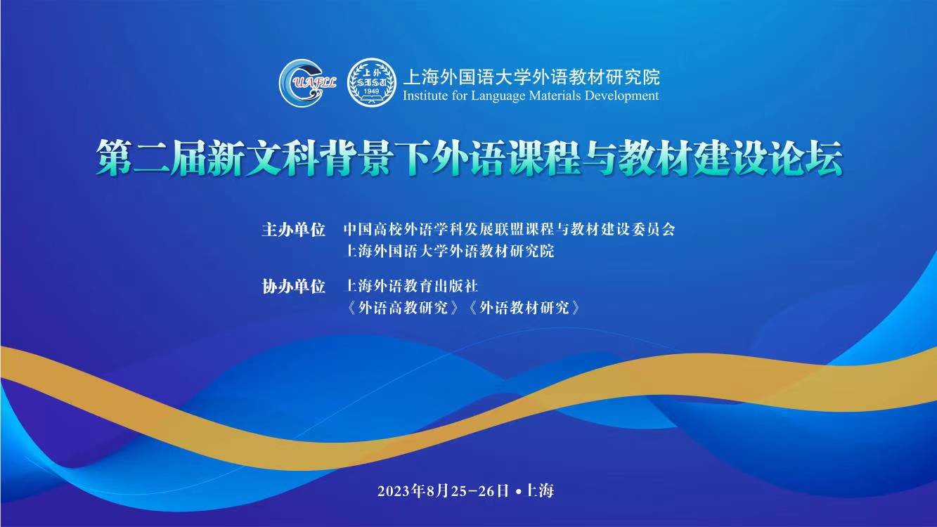 8月25—26日,第二届新文科背景下外语课程与教材建设论坛在上海外国语大学虹口校区成功举办。本次论坛由中国高校外语学科发展联盟课程与教材建设委员会、上海外国语大学外语教材研究院联合举办,上海外语教育出版社、《外语高教研究》《外语教材研究》协办。