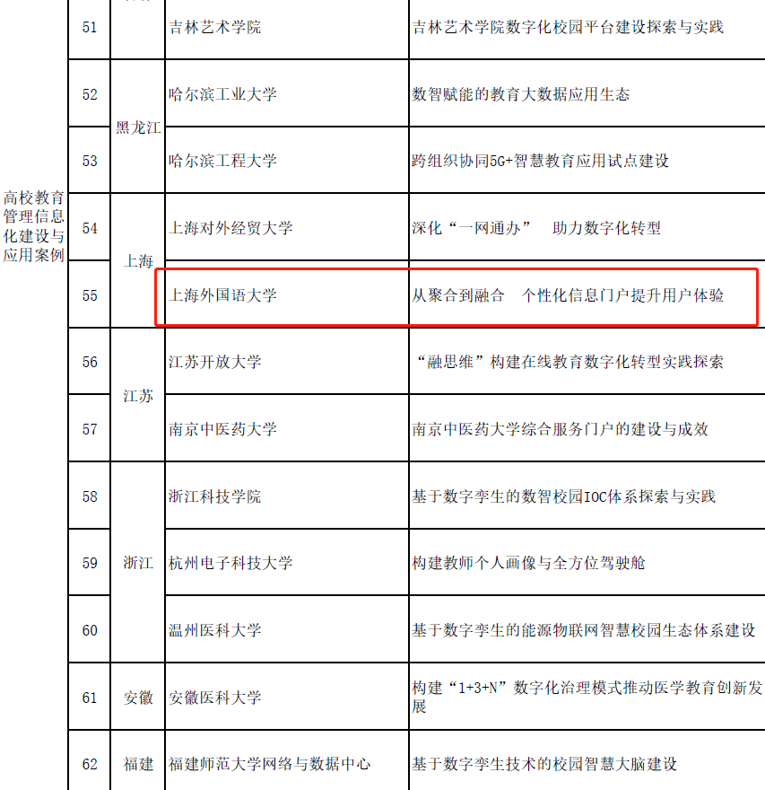 10月17日,经教育部教育管理信息中心批准,我校《从聚合到融合:个性化信息门户提升用户体验》案例入选《2022-2023 年数字化赋能教育管理信息化建设与应用典型案例》。我校融合型信息门户基于融合门户架构,对用户角色、流程、消息、信息、交互等进行了深度融合,实现了门户服务的定制化和个性化,是对传统信息门户一次的革新。融合型信息门户对于提升我校信息化服务能力,提升用户体验具有重要作用,是实现我校教育数字化转型的重要支撑平台。融合型信息门户也是我校“基于5G的泛在融合智慧校园”工信部试点项目的重要组成部分。该案例在“2023年度上海高校信息化建设与应用优秀案例评选”中荣获银奖。